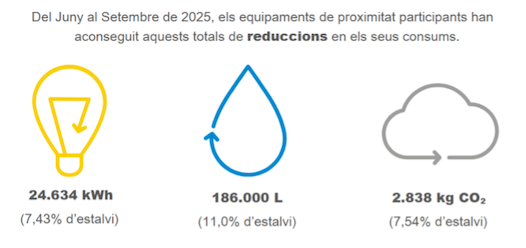 - En consum elèctric: una reducció de 24.624 kWh, que suposa un 7,43% d’estalvi.